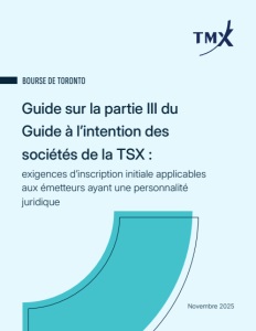 Novembre 2025 BOURSE DE TORONTO Guide sur la partie III du Guide à l’intention des sociétés de la TSX : exigences d’inscription initiale applicables aux émetteurs ayant une personnalité juridique